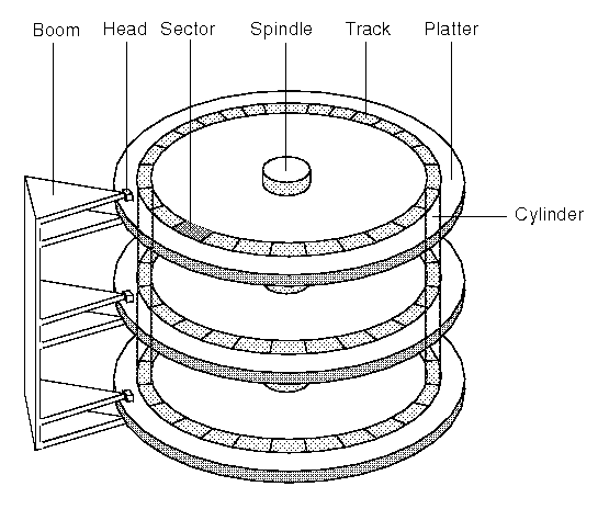 실린더 : 하나의 디스크 팩에서 반지름의 길이가 같은 위치에 있는 트랙들의 집합.
