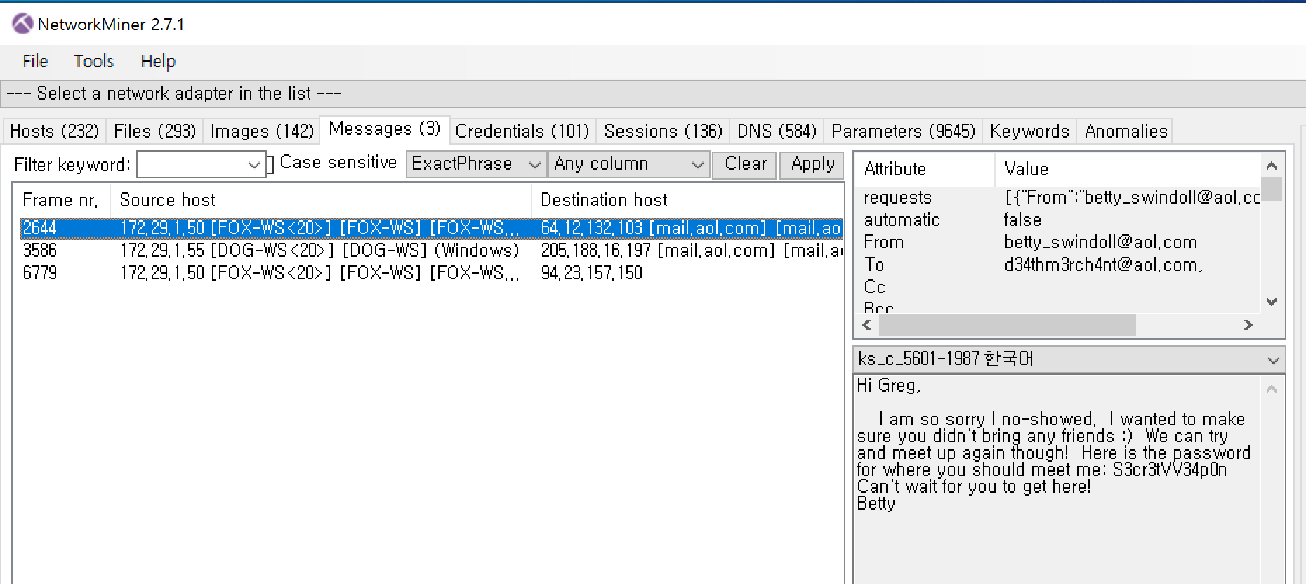 패킷을 분석할 때 많이 사용하는 또 다른 도구로 NetworkMiner라는 것이 있다고 하여 이를 사용하여 다시 한 번 확인해보았다.