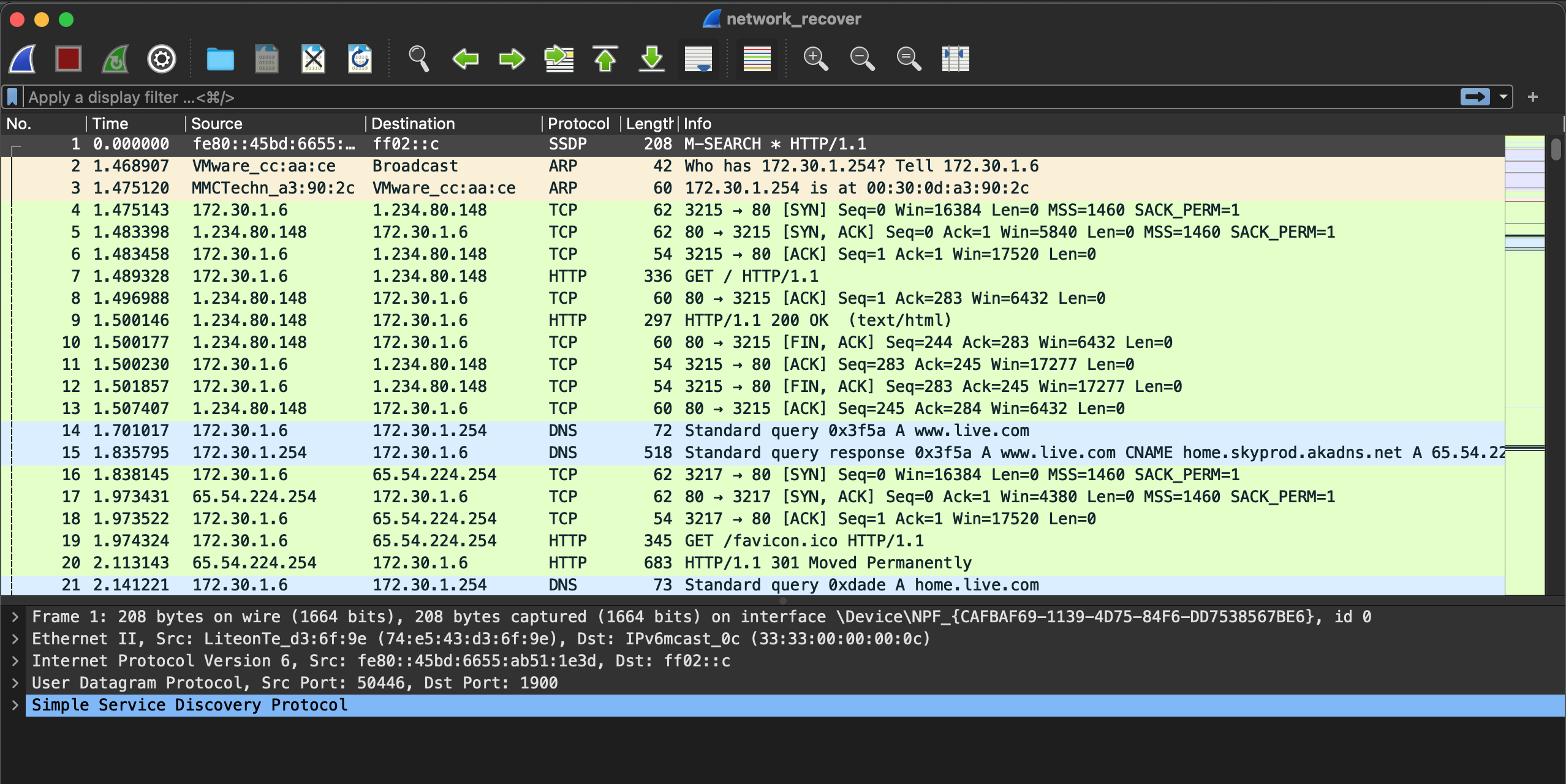 문제 제목으로부터 network 관련된 것이라는 것을 참고하여 이를 Wireshark로 열어봤다.