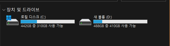 현재 Windows 11을 사용하는 중이고, 하나의 1TB짜리 SSD를 C드라이브와 D드라이브로 분할해 사용하고 있는 중입니다.