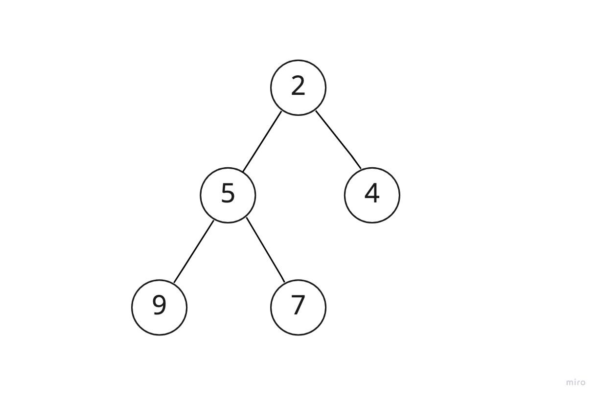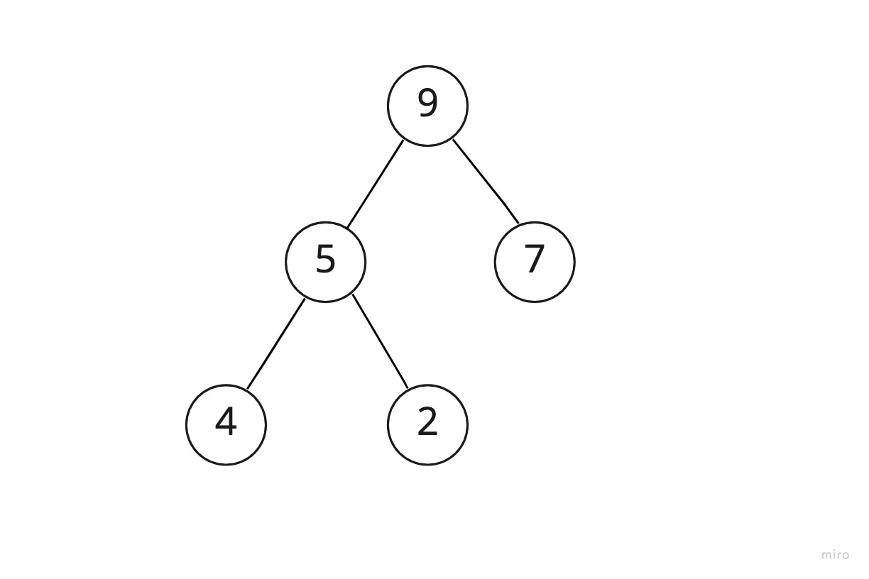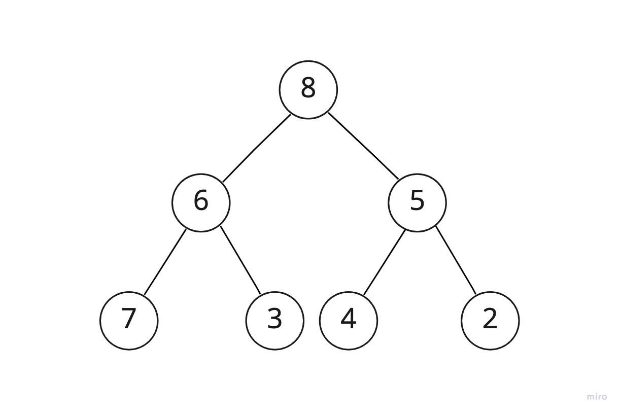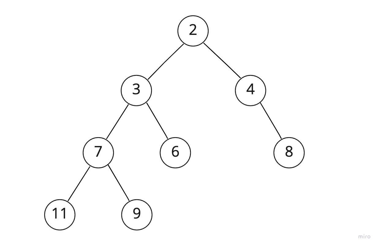 설명을 위해 방금 봤던 힙을 다시 가져와보자.