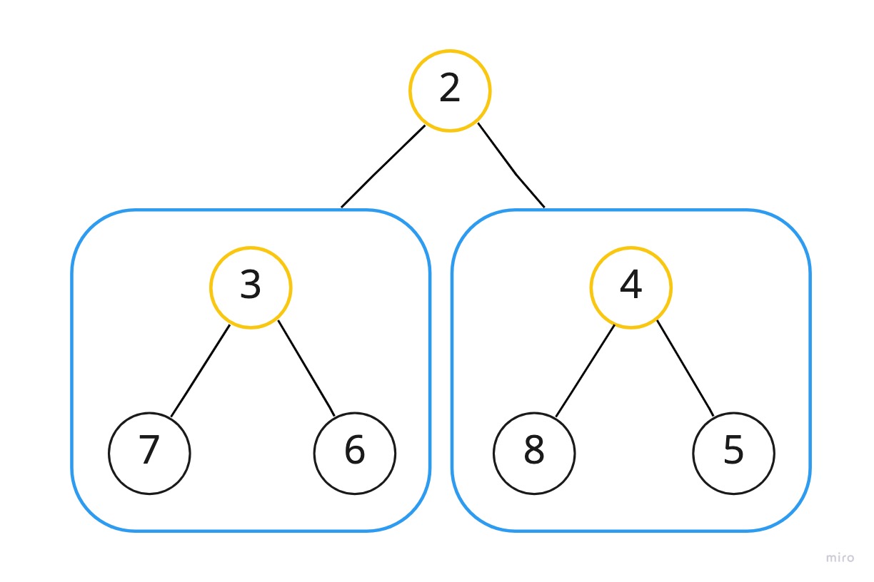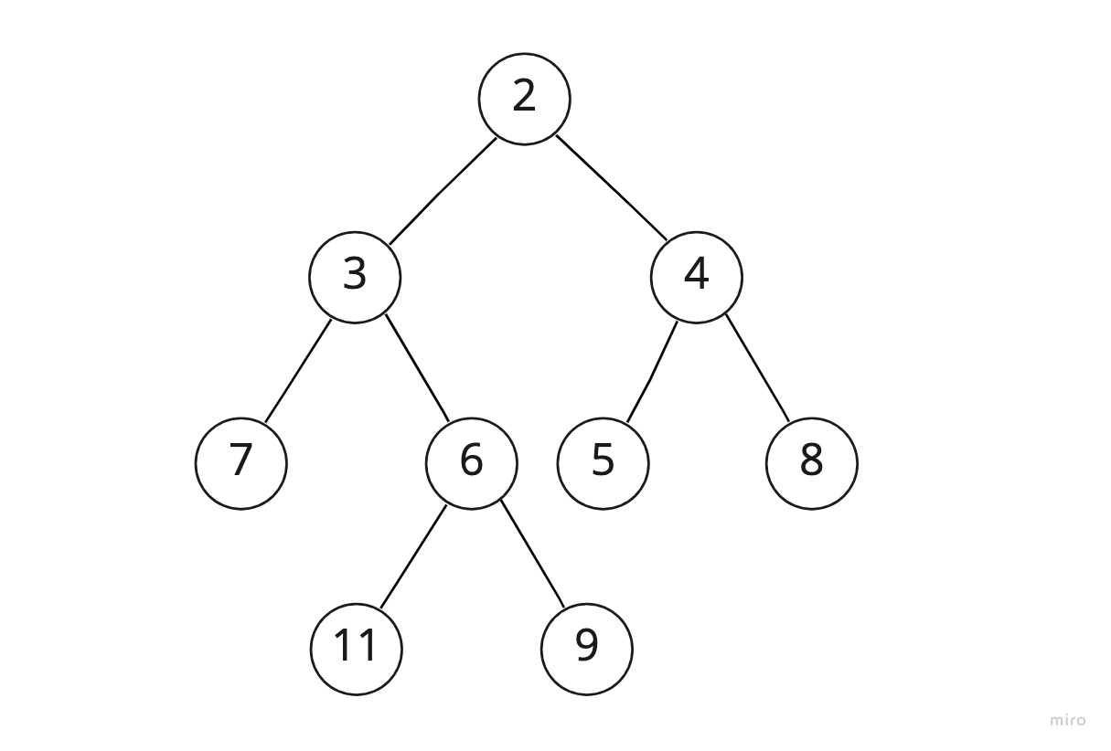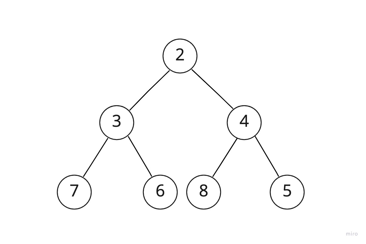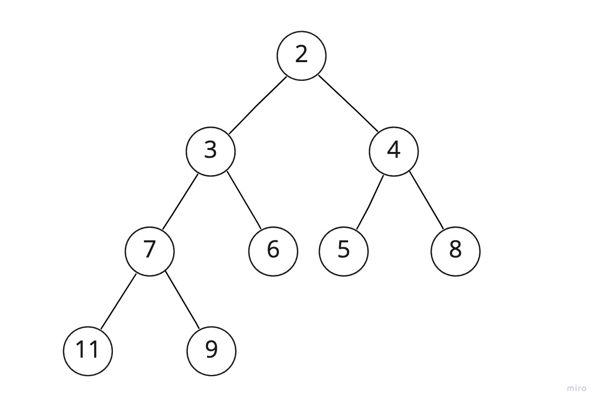 노드처럼 표시된 동그라미 안에 써있는 숫자를 키라고 할 때, 모든 부모 노드의 키가 자식 노드의 키보다 큰 경우이다.