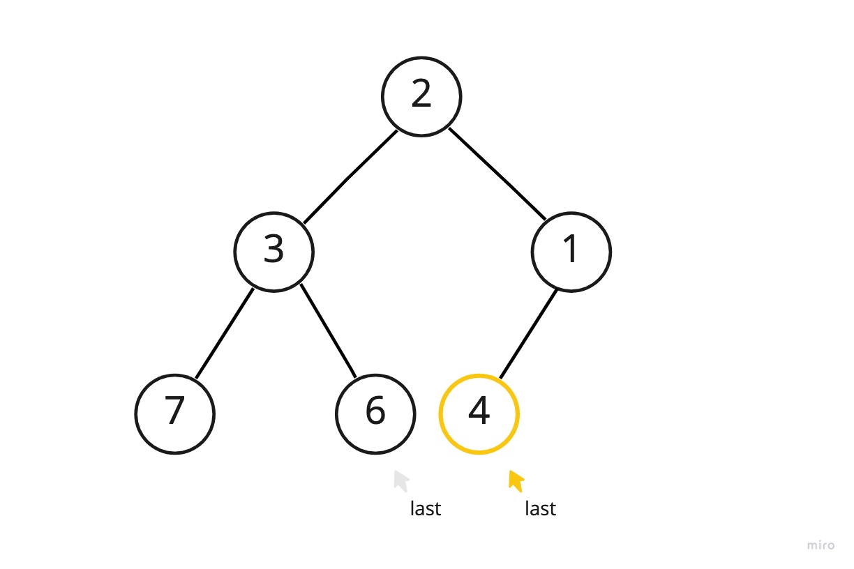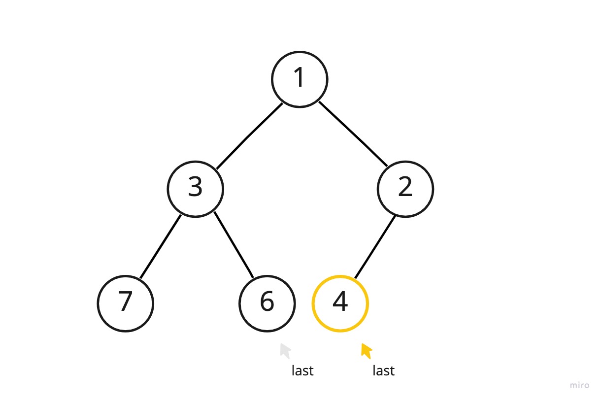 (last : 마지막 노드를 가리키고 있는 접근점, 마지막 노드: 레벨 순회로 데이터를 접근했을 때 제일 마지막에 접근하게 되는 노드)