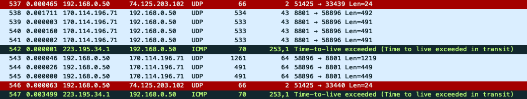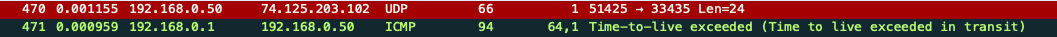 - TTL값을 1 씩 증가시키며 패킷을 목적지로 전송하는 과정을 반복한다. 패킷이 목적지에 도달하거나, 사용자가 설정한 최대 TTL값에 도달하면 반복을 종료한다.