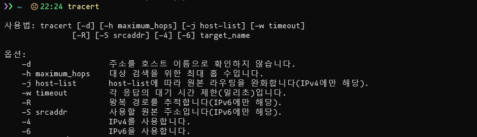 - <목적지 설정> 명령어 실행 시 목적지 IP 주소나 도메인 이름을 지정한다.