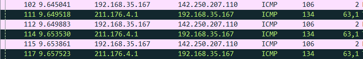 ⇒ tracert와는 다르게 송신할때와 수신할때 사용하는 프로토콜이 다르다.