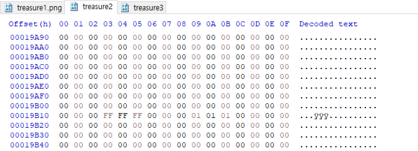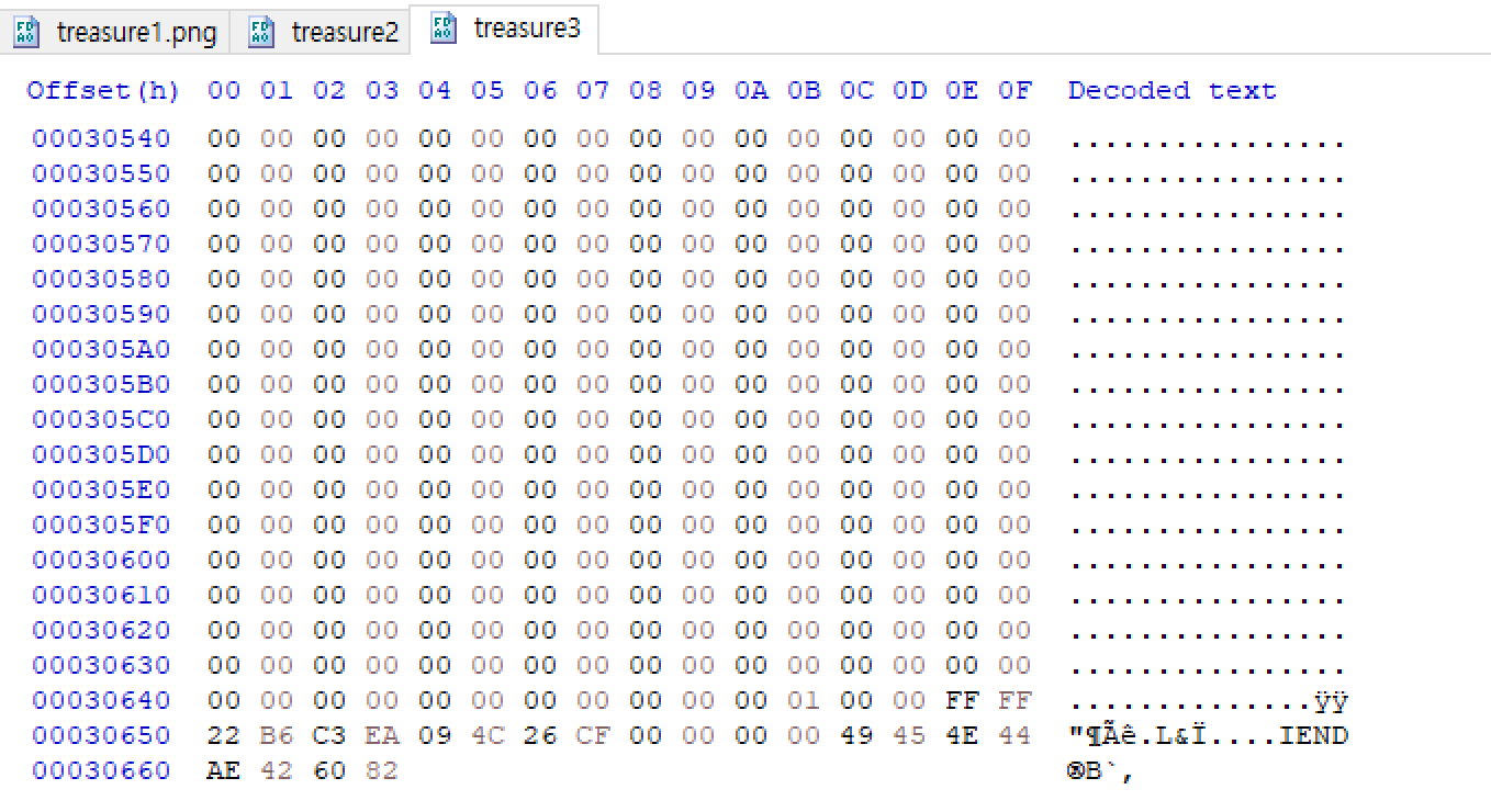 treasure3에서 발견한 것은 수 많은 00 과 그 끝에 있던 IEND, Footer Signature였다!