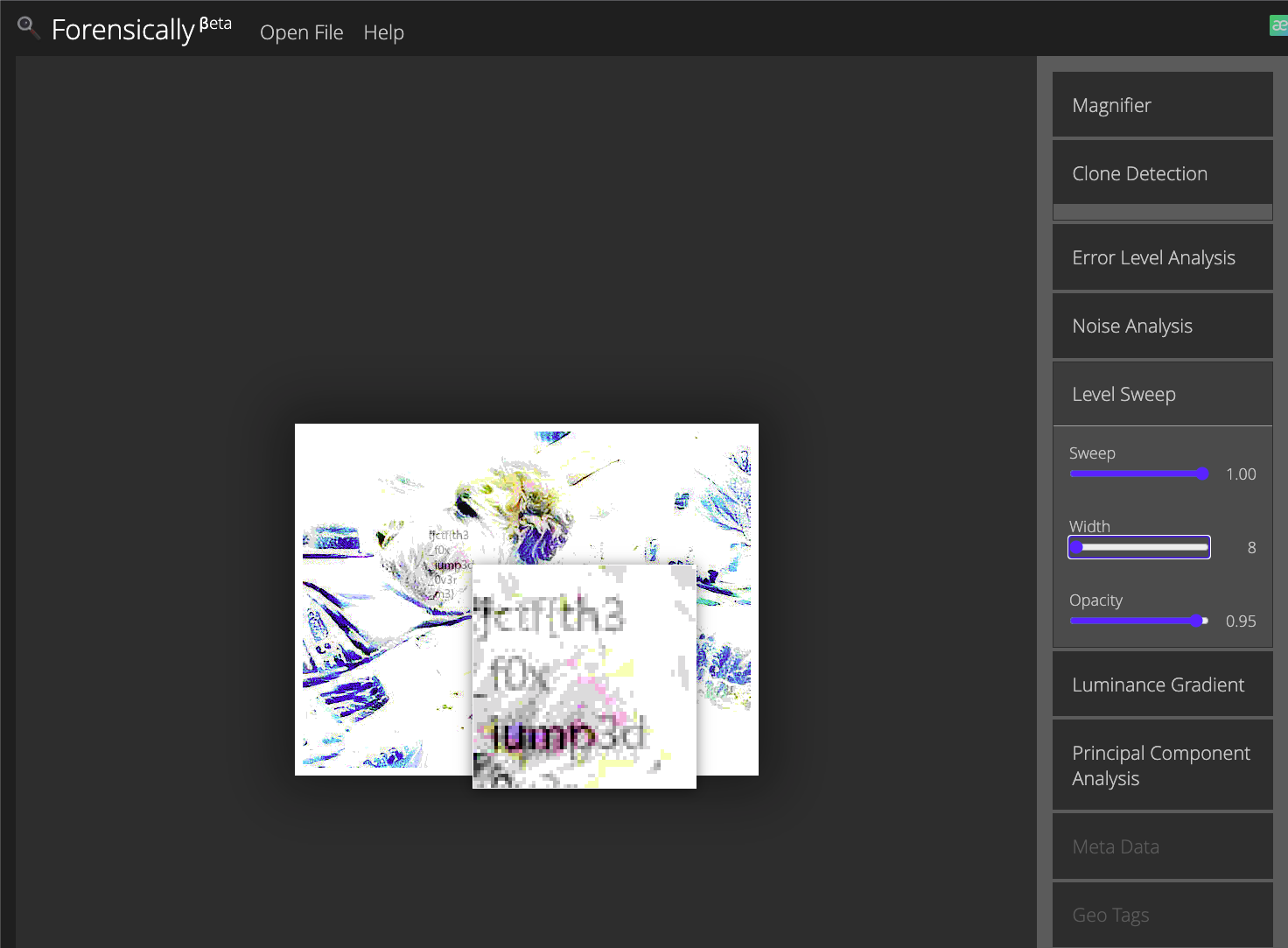 그러다 알게된 툴이 Forensically 인데, 온라인 이미지 포렌식 툴이라고 한다.