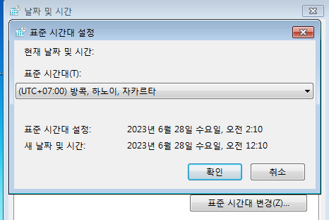 초기 상태인 UTC+9에서 UTC+7로 변경하였다.