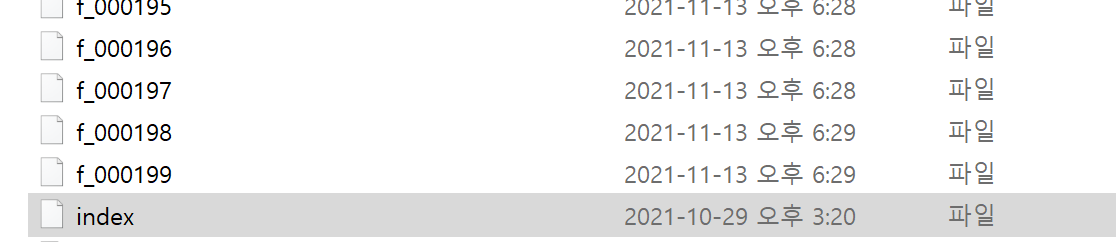 이밖에도 11월 14일 기준으로 확인해봤을 때 data_0 파일과 달리 index 파일은 여전히 마지막 수정일이 10월 29일에 멈춰있다.