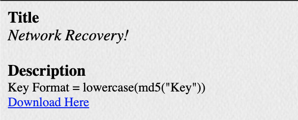 제공받은 파일에서 key값을 찾아 md5 해쉬값을 얻으면 되는 모양이다.