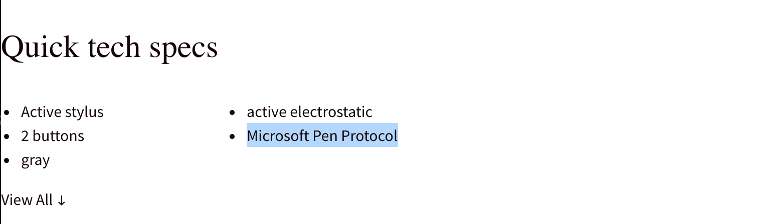 bamboo pen을 판매하는 것과 같은 느낌의 사이트였는데, tech specs에서 이 펜이 microsoft pen protocol을 사용한다는 정보를 얻게 되었다. 곧바로 키워드를 바꿨다.