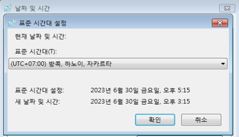 초기 상태인 UTC+9에서 UTC+7로 변경하였다.