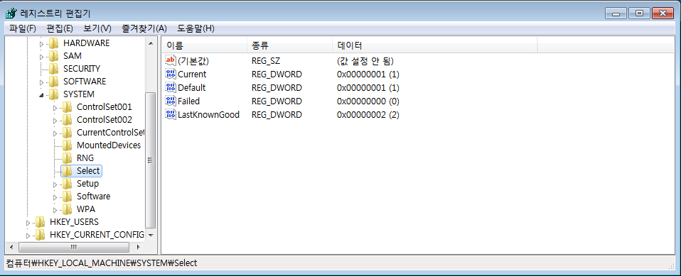 그것은 바로 HKLM/SYSTEM/Select subkey 내에 있는 key들이다.